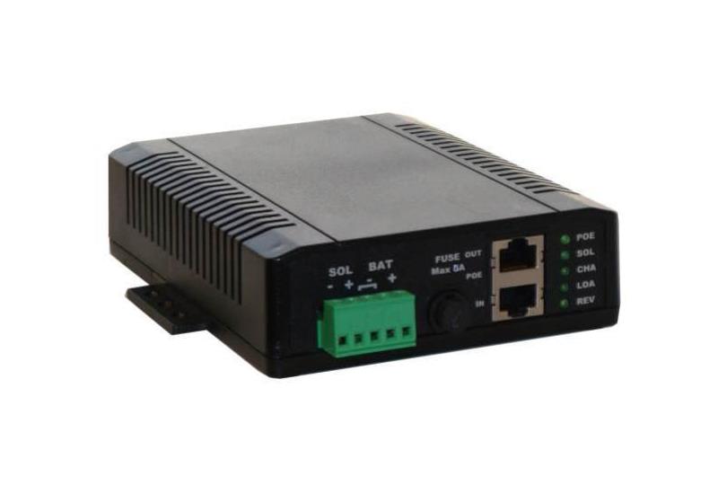 Tycon 12V in 24V out POE/Solar Battery Charge Controller. Now with 30W POE Output on most models! Tycon Power Systems unique POE/Solar charge controllers (TP-SCPOE-xxx) with built-in POE Inserter have dual inputs to charge batteries from a POE source and also a secondary source like solar panels in order to provide redundancy and insure 100% uptime for critical applications. They have a built in POE inserter and the 12V model has integral DC to DC converter that delivers 12V, 18V, 24V or 48V at the POE port. They have full electronic protections for short circuit, reverse current, over-voltage, over-charge and over-discharge. They control the battery charging current to prevent battery damage from overcharging. The built-in over-discharge protection and low self consumption ensures the battery is not over-discharged, which greatly increases the life of the batteries. The load is turned off when 12V battery voltage reaches 11V and turns back on automatically when battery voltage reaches 12V. Likewise with a 24V battery system the 24V model turns off the load when battery voltage is 20V and turns back on when battery voltage reaches 22V. Solar and Battery Connections are via 4 screw terminals for wire size up to 12AWG. POE Input and Output is via 2 RJ45 shielded connectors. There is a secondary voltage output connector on the back with 5 screw terminals for connecting other electronics to the controller using up to 12AWG wire. The controllers are externally fused with a standard replaceable fuse.