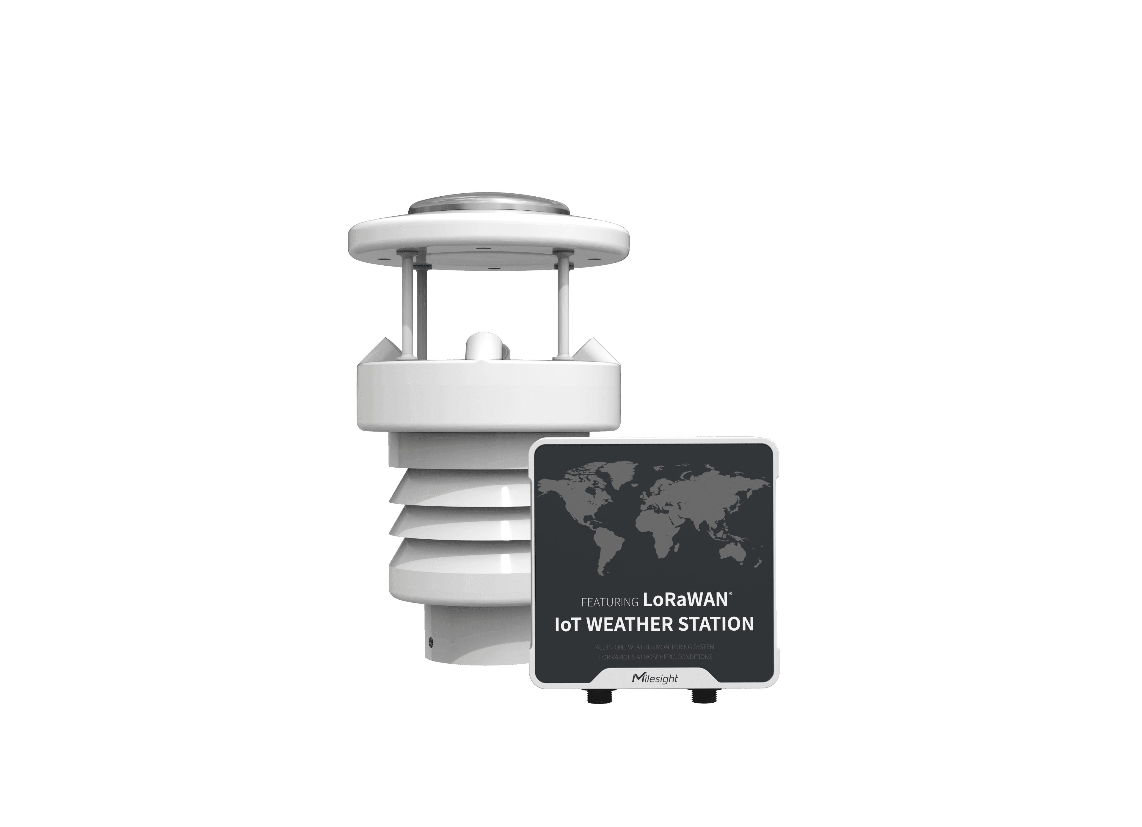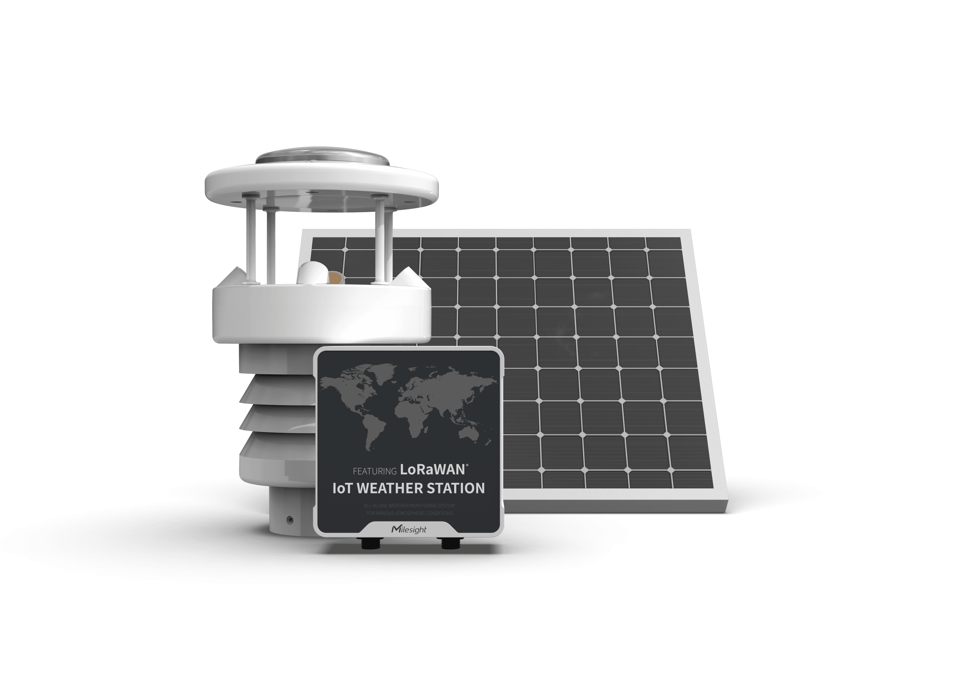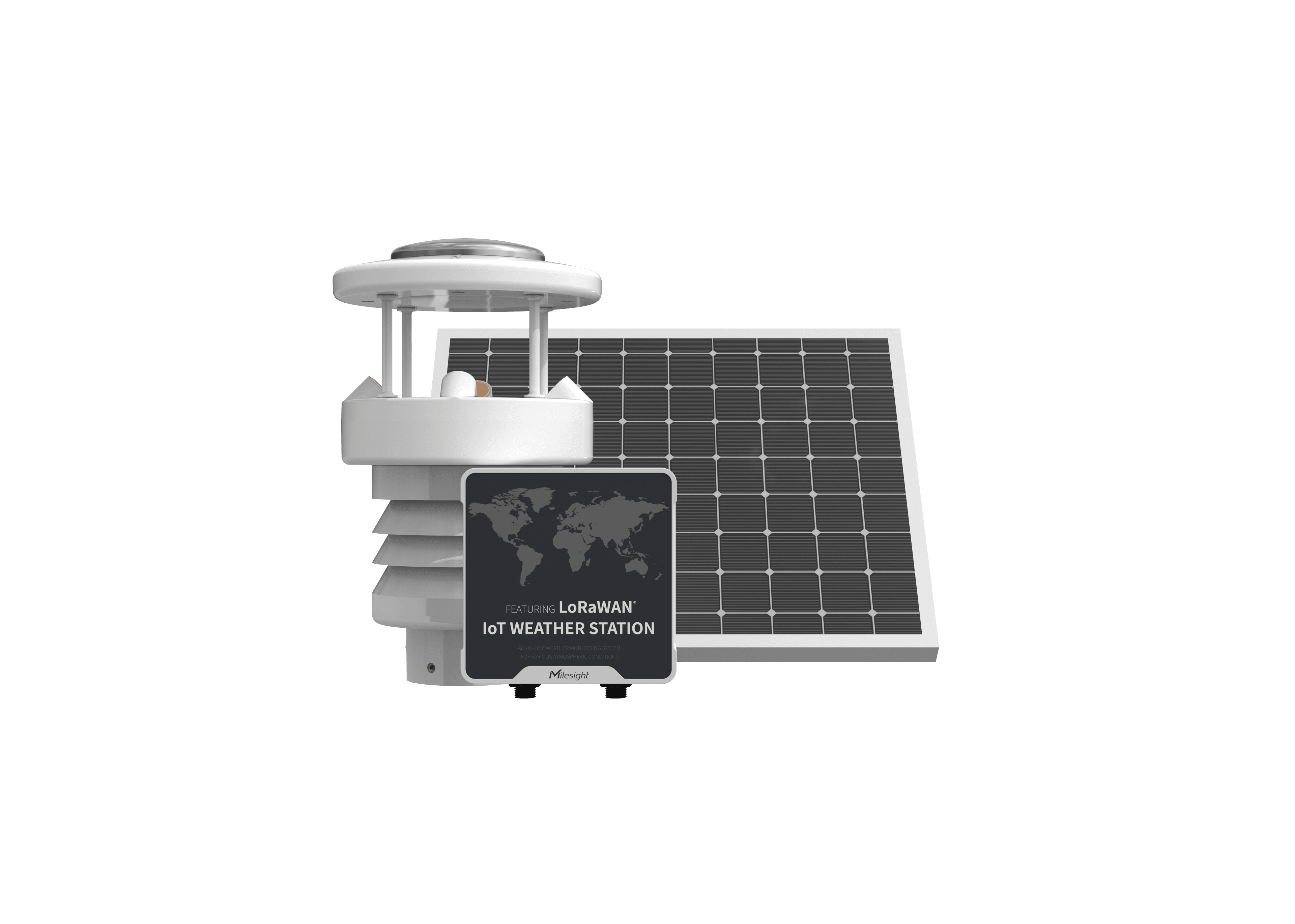 Milesight LoRaWAN AU915/AS923 IoT Weather Station Kit with Rainfall Monitoring. Milesight LoRaWAN AU915/AS923 IoT Weather Station Kit with Rainfall monitoring The Milesight Weather Station (WTS506) is an all-in-one LoRaWAN IoT weather monitoring system for various atmospheric conditions, such as temperature, humidity, wind speed, wind direction, barometric pressure and rainfall. Consisting of 3 main parts, WTS Sensors, WTS Hub and solar panel, the IoT Weather Station is designed to withstand the most challenging weather conditions and is easy to install in different scenarios to be widely used in meteorology, smart agriculture, smart building, etc. Sensor data is transmitted using LoRaWAN® technology. Compliant with Milesight LoRaWAN® gateway and Milesight Cloud solution, users can manage all sensor data and trigger other sensors or appliances easily via webpage or mobile App remotely. This Weather station is also compatible with Scopious IoT.